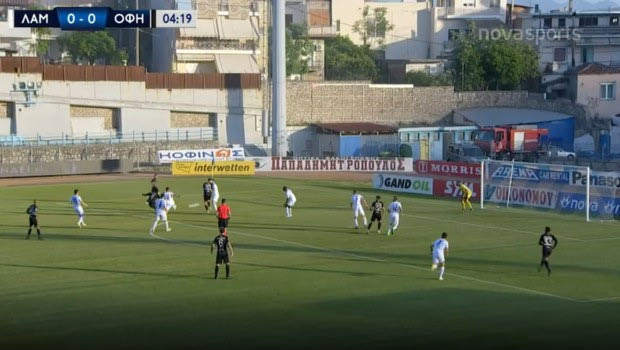 Ο ΟΦΗ μπήκε μπροστά στο σκορ στην εκτός έδρας αναμέτρηση με τη Λαμία στο 5ο λεπτό. Έπειτα από ένα διώξιμο, ο Μεγιάδο έστρωσε την μπάλα στον Σακόρ, ο οποίος με ένα ωραίο σουτ με το αριστερό μέσα απ’ την περιοχή έστειλε την μπάλα στα δίχτυα του Επασί για το 0-1.