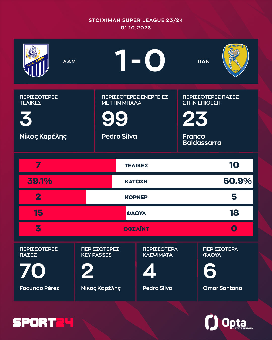 Ο Παναιτωλικός μπήκε δυνατά για να φέρει το ματς στα ίσια, όμως δεν τα κατάφερε. Στο 48ο λεπτό ο Πέδρο με κοντινή προβολή δεν πρόλαβε να σκοράρει, ενώ τρία λεπτά μετά ο Καρέλης έχασε τεράστια ευκαιρία όντας αφύλακτος στην καρδιά της άμυνας της Λαμίας.