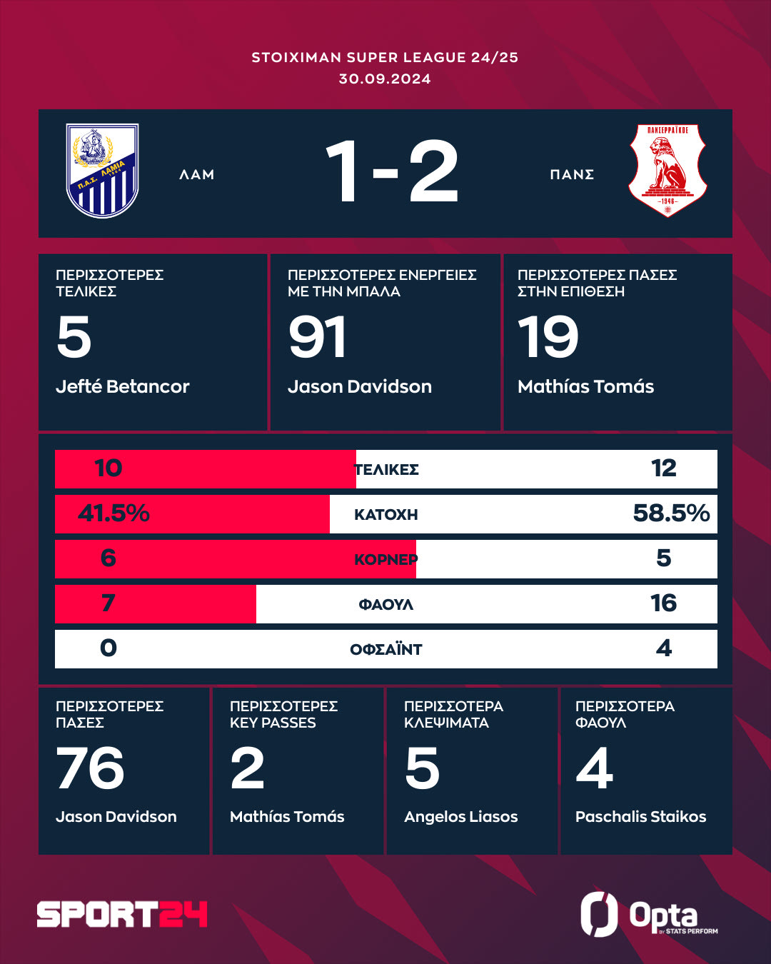 Τα στατιστικά και οι κορυφαίες επιδόσεις στο Λαμία - Πανσερραϊκός
