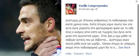 Ο αμυντικός του Πανιωνίου μέσω του λογαριασμού που διατηρεί στο Facebook επιτέθηκε κατά του Σούλη Παπαδόπουλου, ενώ άφησε αιχμές και για τους παίκτες του Άρη.