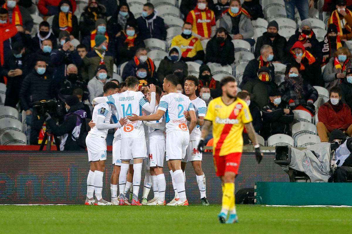 Οι παίκτες της Μαρσέιγ πανηγυρίζουν γκολ που σημείωσαν κόντρα στη Λανς για τη Ligue 1 2021-2022 στο "Βελοντρόμ", Μασσαλία | Σάββατο 22 Ιανουαρίου 2022 © 2022 Michel Spingler/Associated Press