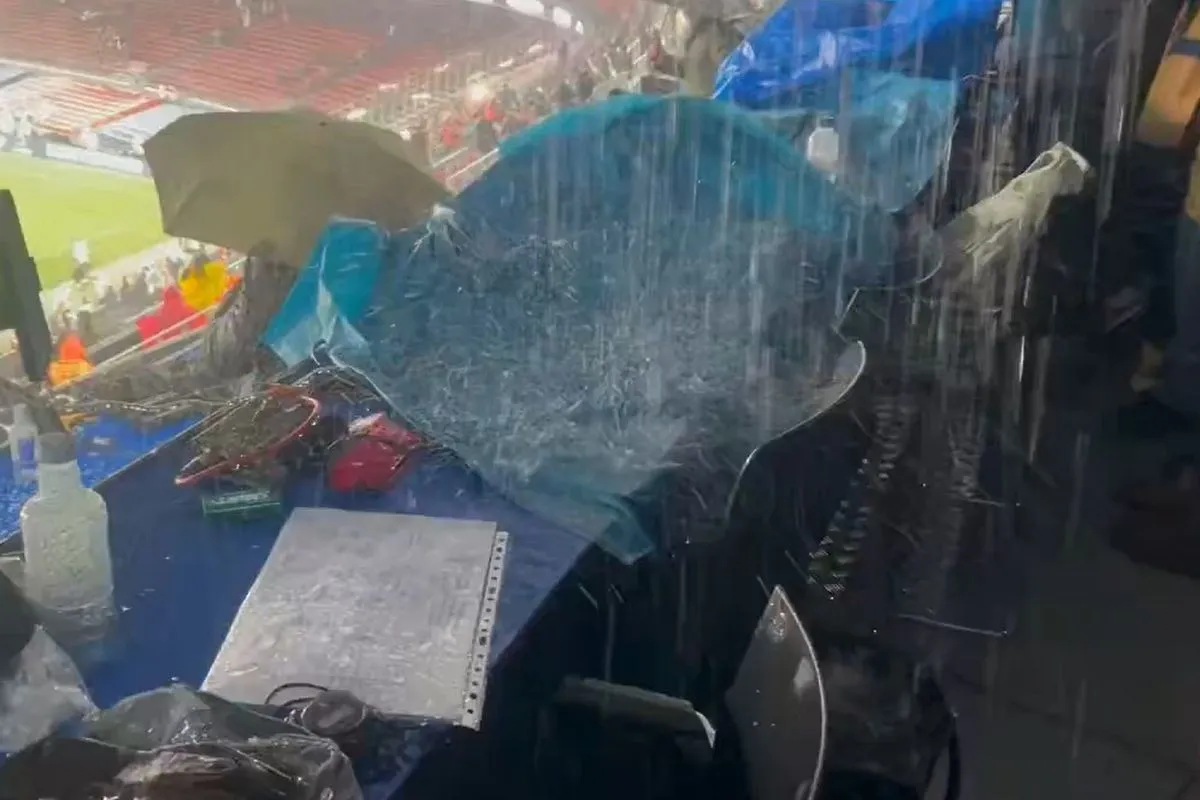 Στα VIDEOS που κυκλοφόρησαν στα social media έδειχναν τις εξέδρες, αλλά και τα δημοσιογραφικά να πλημμύρισαν από τα ακραία καιρικά φαινόμενα.