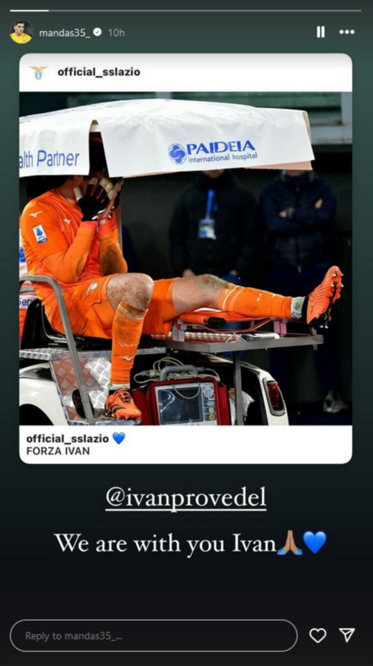 Τη θέση του στα τελευταία λεπτά πήρε ο Χρήστος Μανδάς, με τον νεαρό τερματοφύλακα να στέλνει μάλιστα τις ευχές του στον Προβεντέλ μέσω του λογαριασμού της ομάδας στο Instagram, τονίζοντας πως άπαντες είναι μαζί του σε αυτή τη δύσκολη στιγμή.