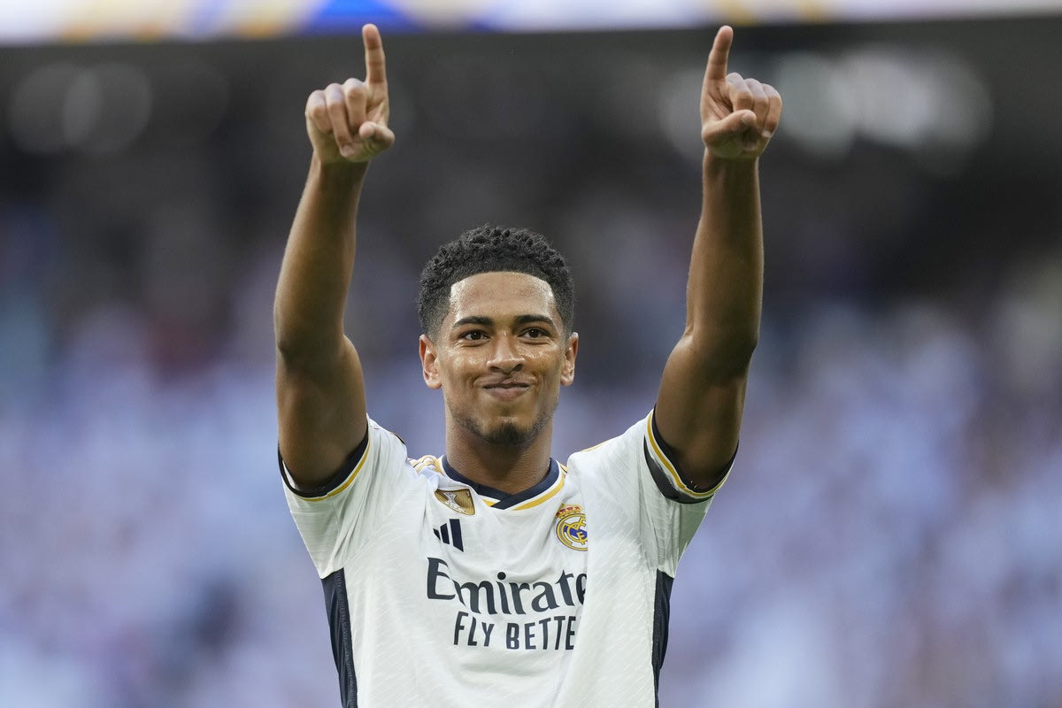 Ο Τζουντ Μπέλιγχαμ πανηγυρίζει γκολ του με τη Ρεάλ 2023 AP Photo/Jose Breton
