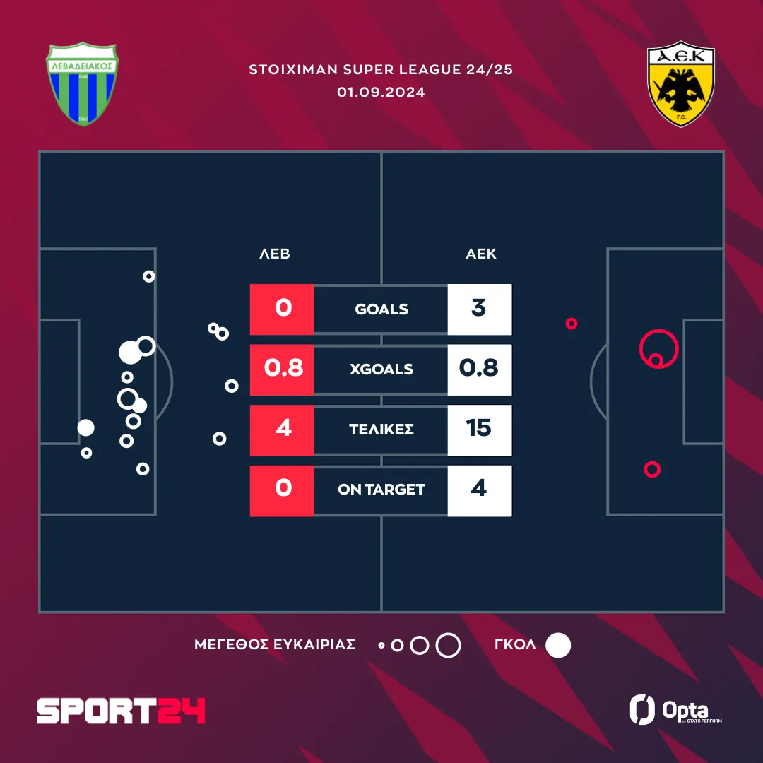 Λεβαδειακός – ΑΕΚ 0-3: Έκανε τη δουλειά και πέρασε με τριάρα από τη Λιβαδειά