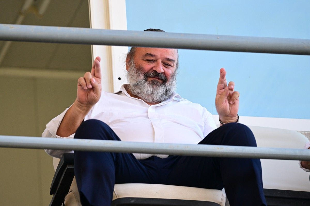 Μάλιστα, σε μία φωτογραφία φαίνεται να κάνει fingers crossed, μία χειρονομία για την καλοτυχία της ομάδας του πριν από την έναρξη της αναμέτρησης κόντρα στον Λεβαδειακό.