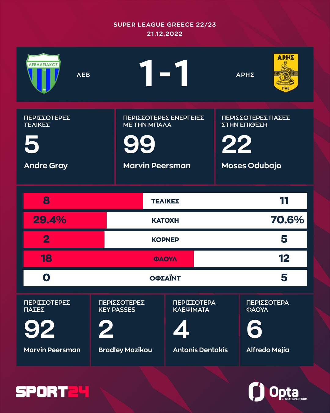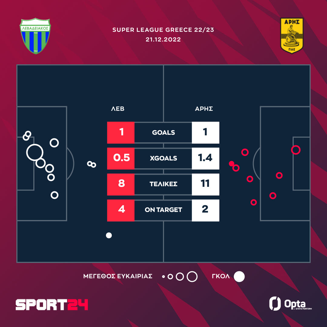 Στο ισόπαλο 1-1 κόλλησαν Λεβαδειακός και Άρης με το τελικό αποτέλεσμα να βρίσκεται περισσότερο ικανοποιημένους τους γηπεδούχους που καίγονται για βαθμούς.