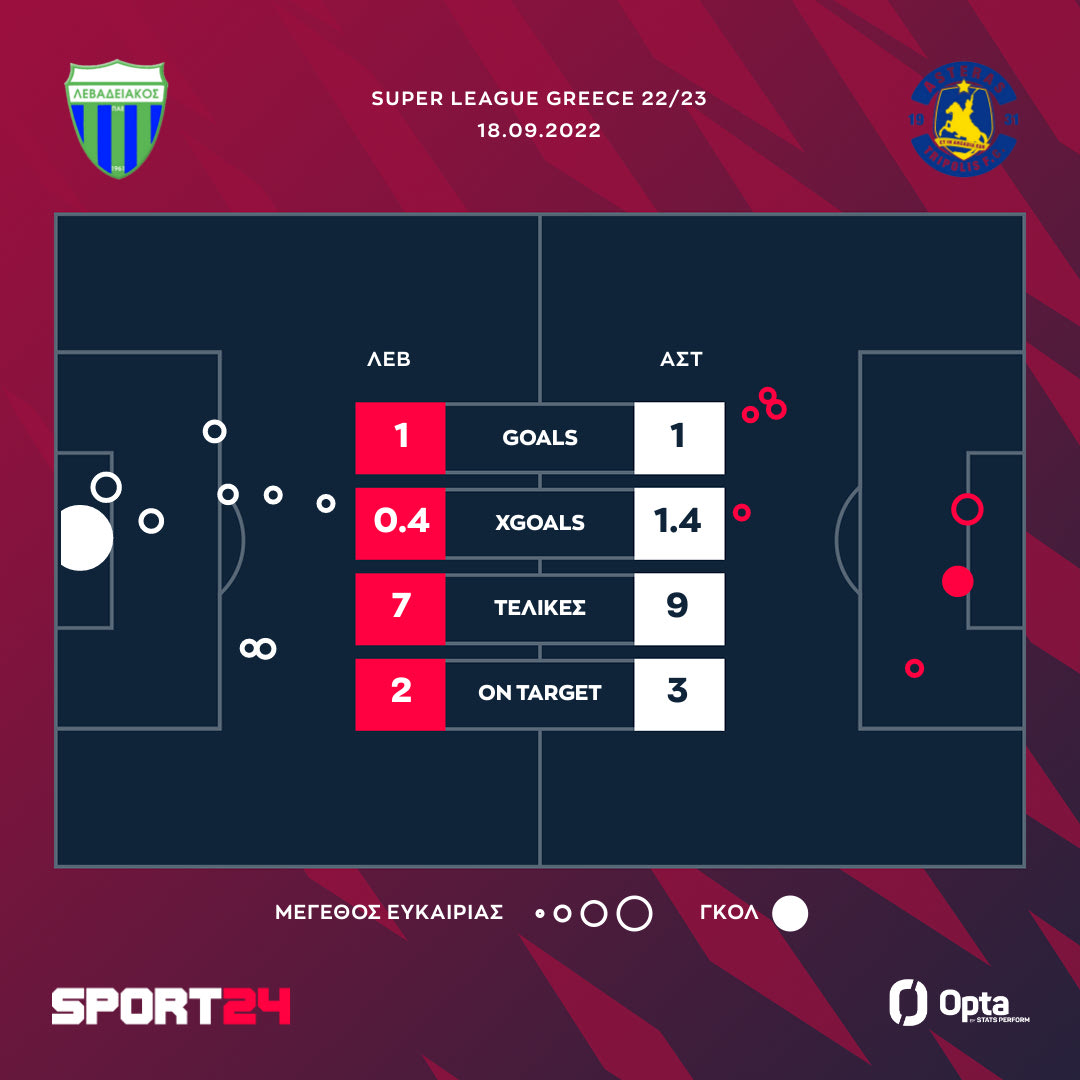 Λεβαδειακός – Αστέρας Τρίπολης 1-1: Απόλυτη ισορροπία και ισοπαλία, παραμένουν χωρίς νίκη Βοιωτοί και Αρκάδες