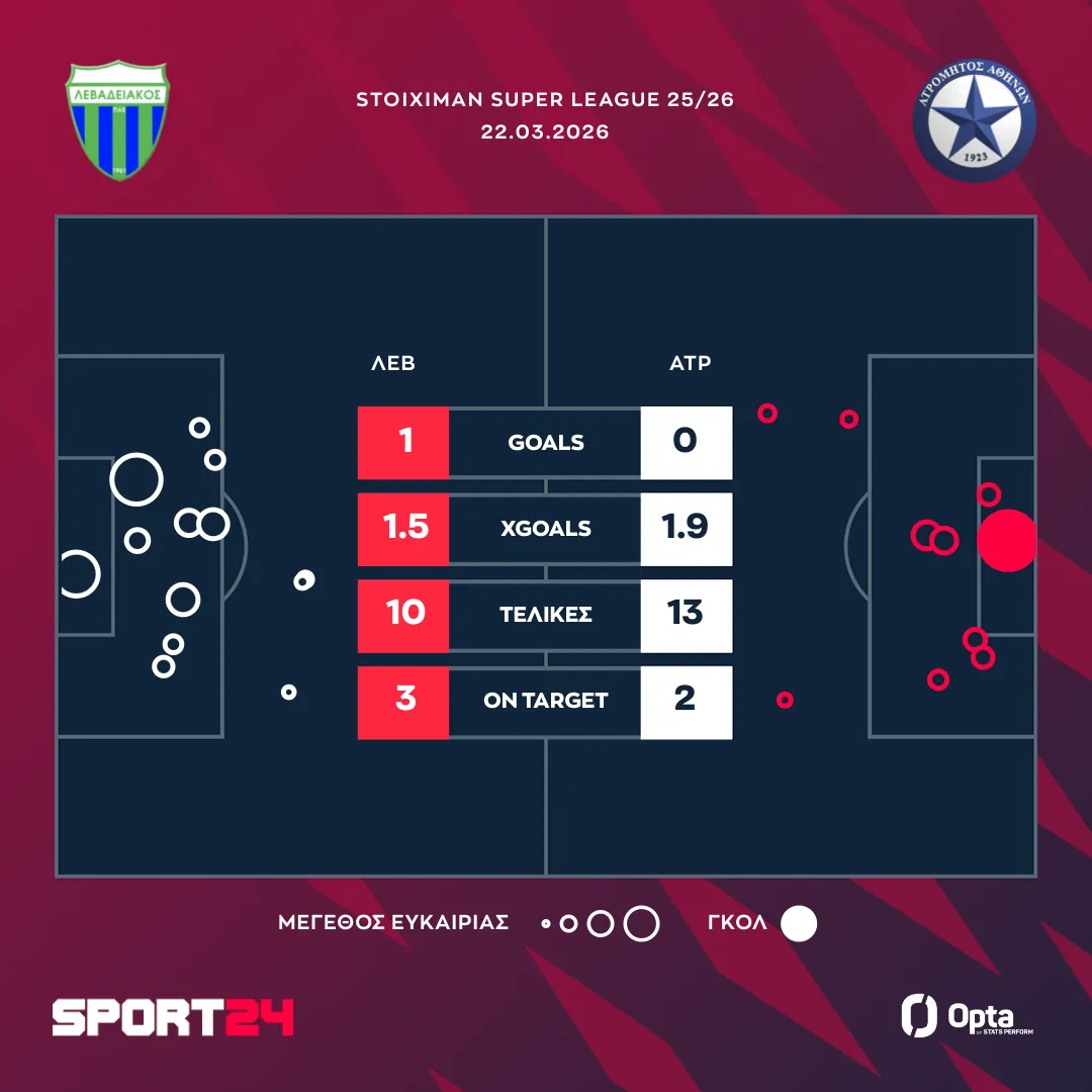 Λεβαδειακός – Ατρόμητος 1-0: H Boιωτοί επέστρεψαν στις νίκες μετά τον Φλεβάρη, στα playouts οι Περιστεριώτες
