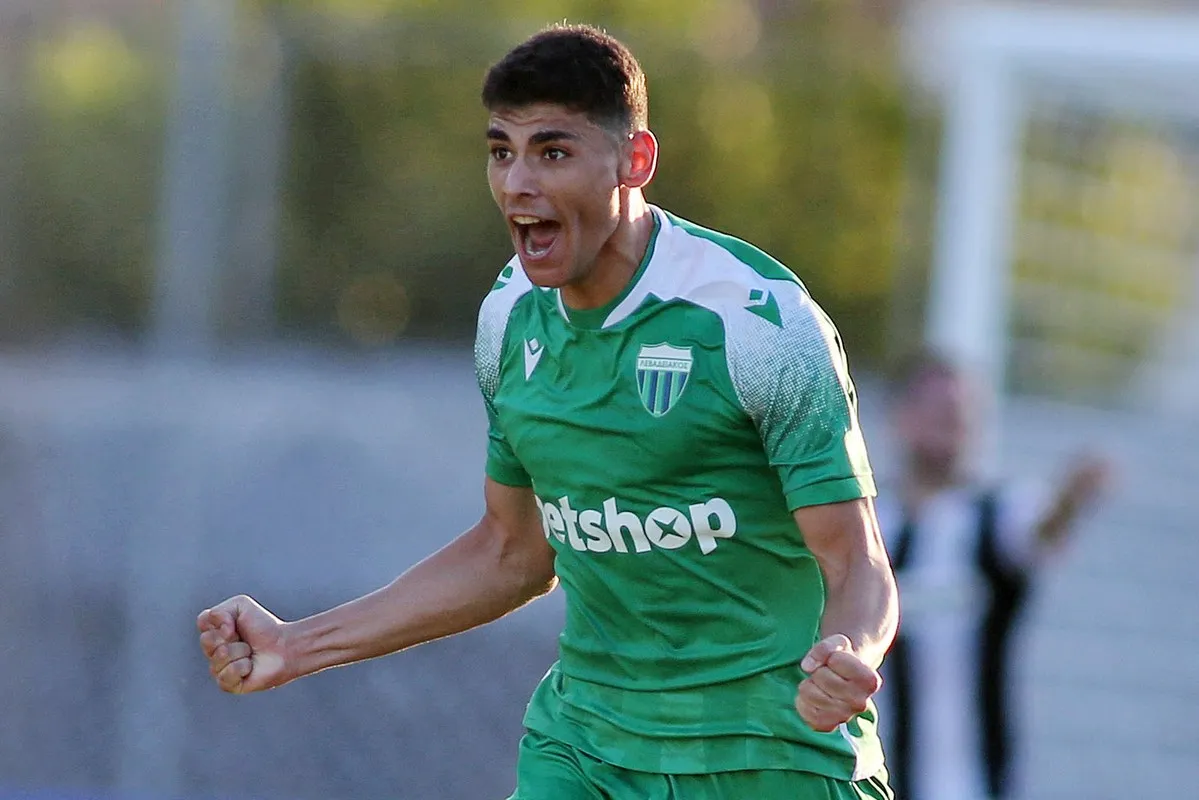 Ο Τσάπρας πανηγυρίζει με τη φανέλα του Λεβαδειακού