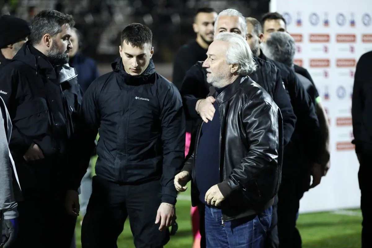 Την ώρα που ο Νίκος Παπαδόπουλος έκανε δηλώσεις στην κάμερα της COSMOTE TV, το πλάνο μεταφέρθηκε σε ένταση που δημιουργήθηκε μεταξύ φιλάθλων στις εξέδρες.