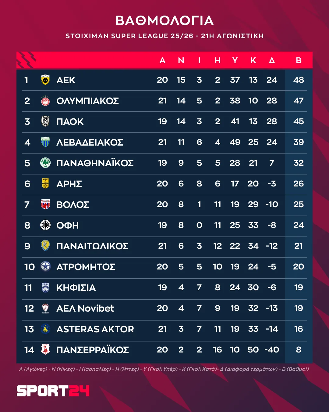 Πλέον ο Ολυμπιακός, που έμεινε τρίτος, στρέφει την προσοχή του στη μάχη με την Μπάγερ Λεβερκούζεν την Τετάρτη (18/02, 22:00) με φόντο τους 16 του Champions League.