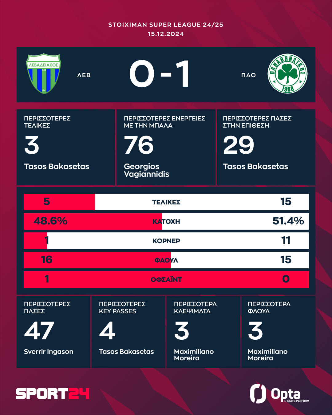 Οι τελικές και τα xGoals στο Λεβαδειακός - Παναθηναϊκός