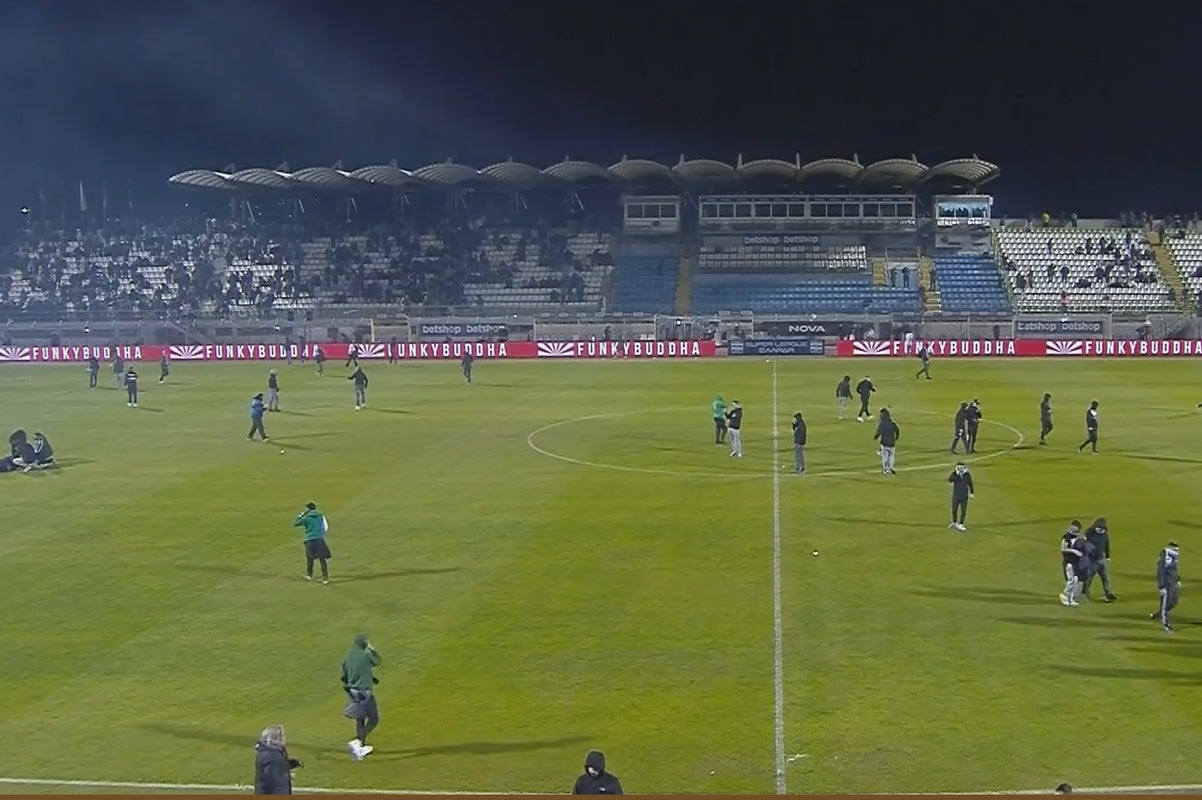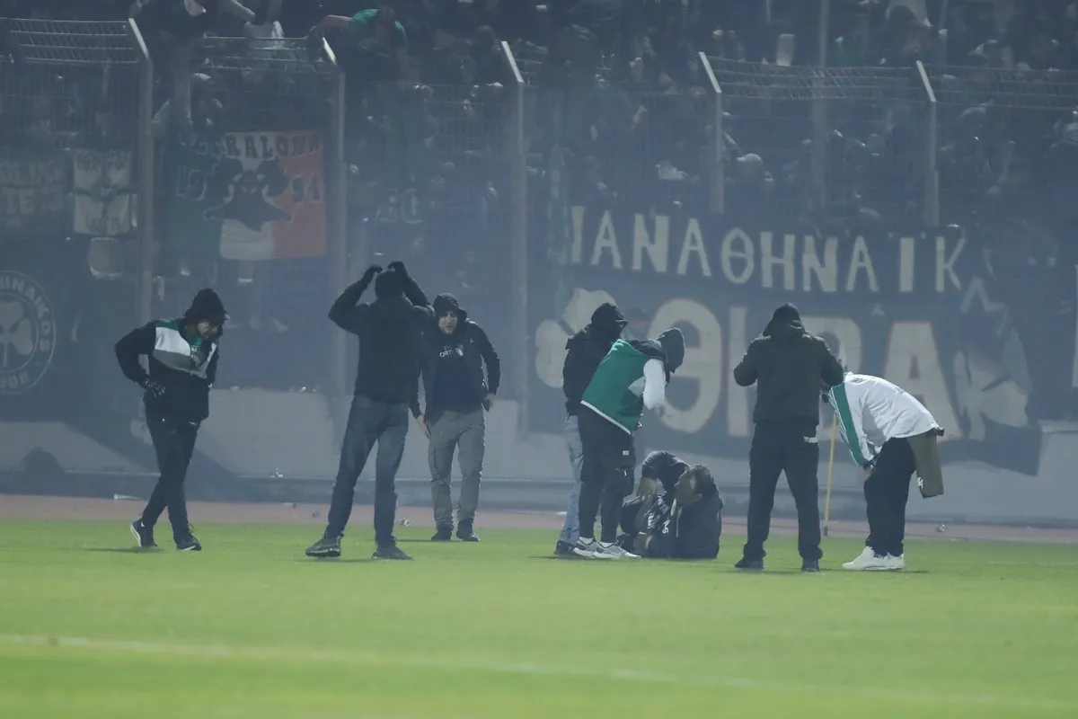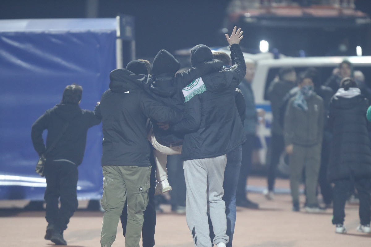 Μάλιστα υπήρξαν και δύο οπαδοί που λιποθύμησαν. Οι δύο φίλαθλοι έπεσαν μέσα στο χορτάρι και έδειχναν να μην έχουν τις αισθήσεις τους.
