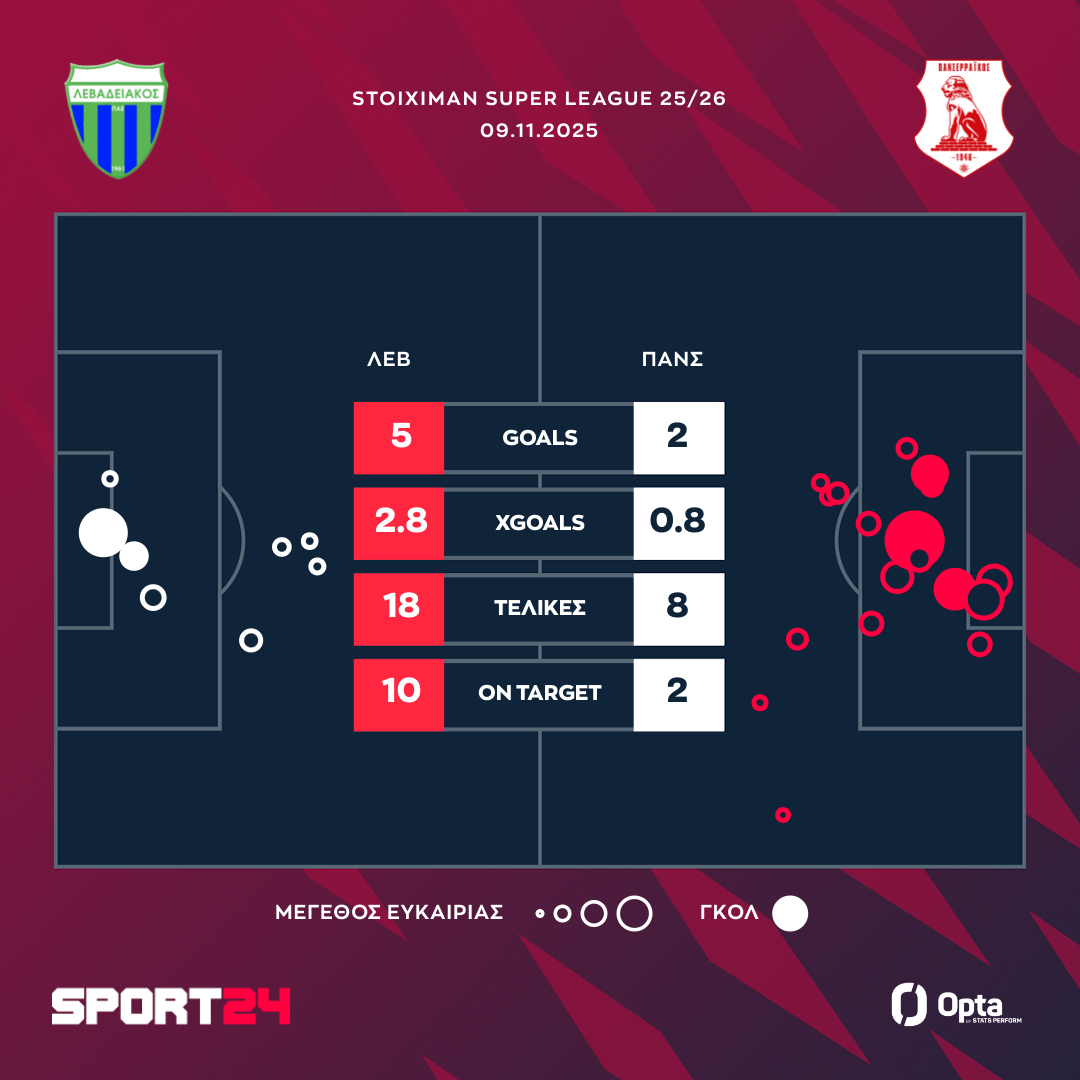 Λεβαδειακός – Πανσερραϊκός 5-2: Η αρμάδα του Παπαδόπουλου ισοπέδωσε τα λιοντάρια και συνεχίζει τις υψηλές πτήσεις