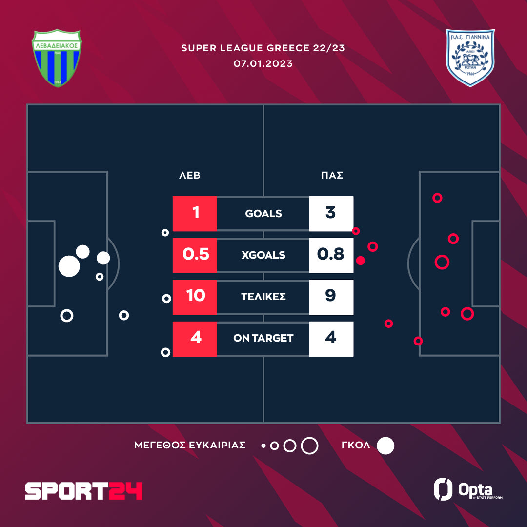 Ο Μπάλαν άνοιξε το σκορ στο 45′, ο Εραμούσπε έκανε το 2-0 στο 65′, ενώ τέσσερα λεπτά αργότερα ο Παμλίδης ανέβασε τον δείκτη του σκορ. Στο 88′ ο Παναγιώτου με ένα όμορφο γκολ μείωσε . Κάπως έτσι, οι Ηπειρώτες έφτασαν στους 17 πόντους, ενώ ο Λεβαδειακός παρέμεινε στους 11.