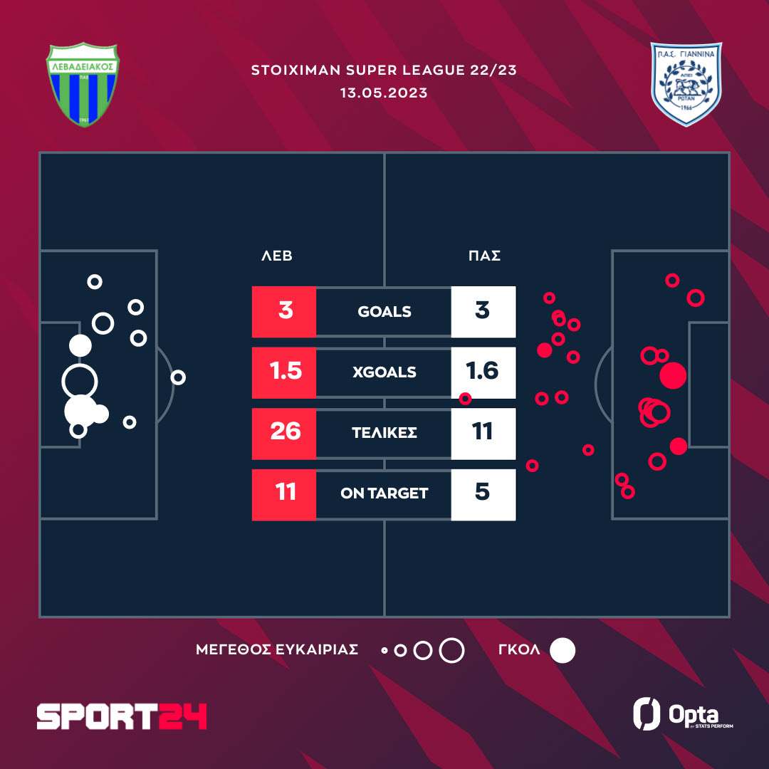 Πολύ ωραίο παιχνίδι έγινε στη Λιβαδειά, καθώς η αναμέτρηση μεταξύ του Λεβαδειακού και του ΠΑΣ Γιάννινα έληξε ισόπαλο 3-3 για την τελευταία αγωνιστική των playouts.