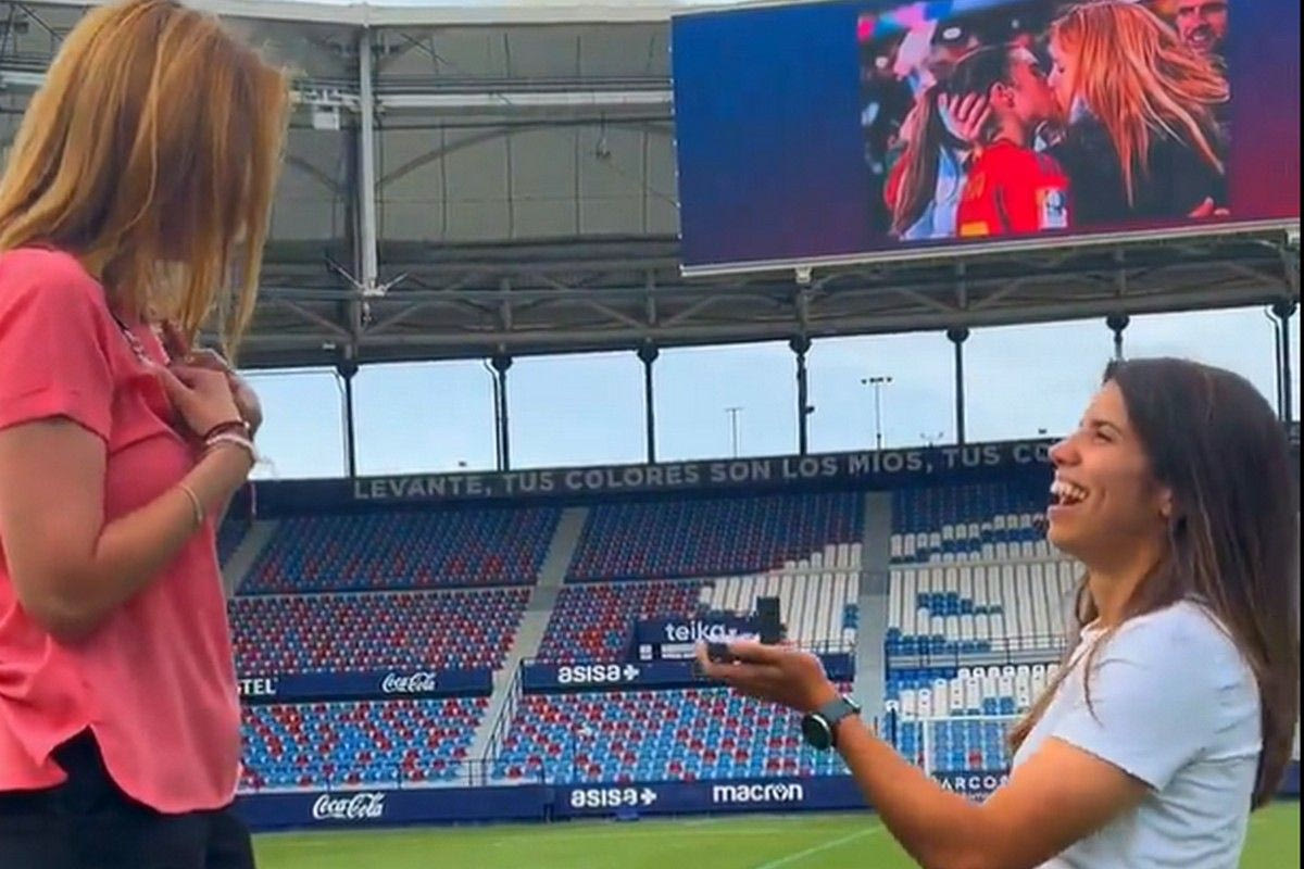 Η ποδοσφαιρίστρια της Λεβάντε, Άλμπα Ρεντόντο Φερέρ, έκανε πρόταση γάμου στην αγαπημένη της, Κριστίνα Μονλεόν, μέσα στον αγωνιστικό χώρο.