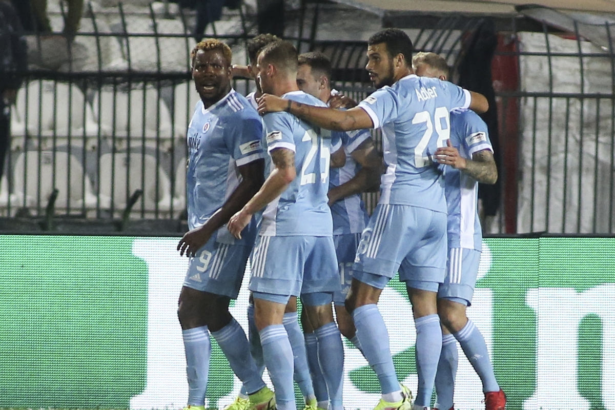 Οι παίκτες της Σλόβαν πανηγυρίζουν γκολ κόντρα στον ΠΑΟΚ σε ματς του Europa Conference League @2021 Giannis Papanikos/AP IMAGES