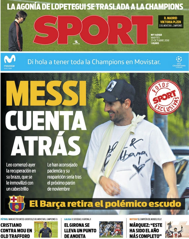 Η ισπανική "SPORT" έφερε στο φως της δημοσιότητας την πρώτη φωτογραφία του Λιονέλ Μέσι με δεμένο το τραυματισμένο δεξί του χέρι (PHOTO).