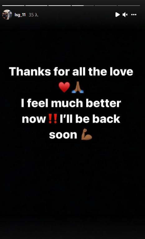 Ο Λιβάι Γκαρσία ανέφερε στο Story του: “Σας ευχαριστώ για όλη την αγάπη (σ.σ. που μου δείξατε). Νιώθω πολύ καλύτερα τώρα. Θα επιστρέψω πίσω σύντομα“.