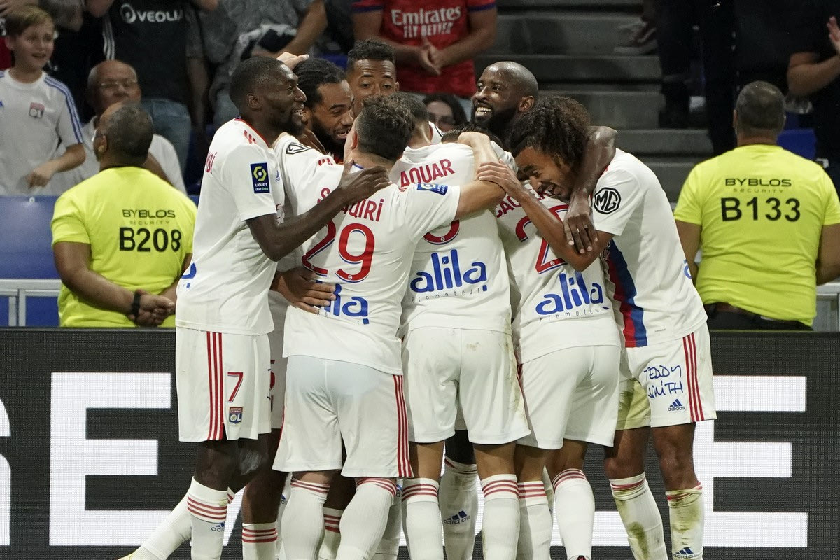 Οι παίκτες της Λιόν πανηγυρίζουν γκολ που σημείωσαν κόντρα στο Στρασβούργο