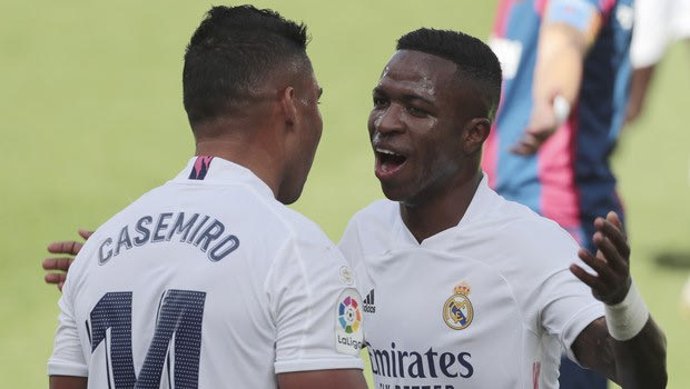 Καζεμίρο και Βινίσιους πανηγυρίζουν το 0-1 της Ρεάλ απέναντι στη Λεβάντε