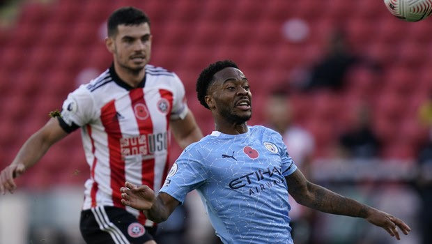 Ο Ραχίμ Στέρλινγκ κοντρολάρει την μπάλα στην αναμέτρηση της Μάντσεστερ Σίτι με τη Σέφιλντ