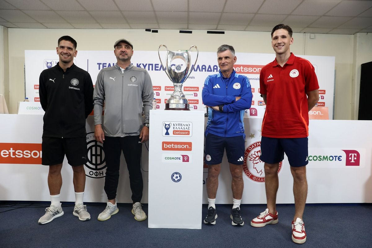 LIVE Streaming: Η συνέντευξη Τύπου προπονητών και αρχηγών ΟΦΗ και Ολυμπιακού για τον τελικό Κυπέλλου Ελλάδας Betsson