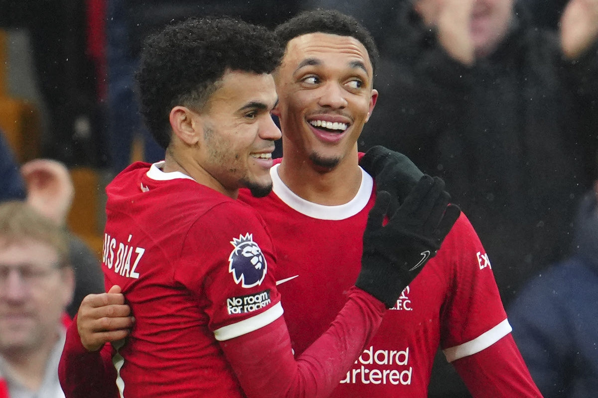 Ο Αλεξάντερ-Άρνολντ πανηγυρίζει γκολ με την Λίβερπουλ κόντρα στην Φούλαμ | 3 Δεκεμβρίου 2023 @2023 Jon Super/AP IMAGES