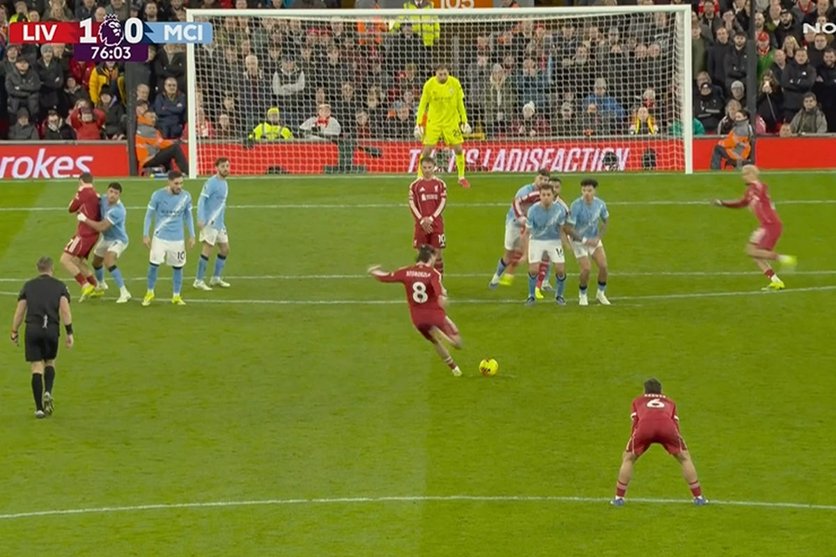 Λίβερπουλ – Μάντσεστερ Σίτι: Ο Σόμποσλαϊ με τηλεκατευθυνόμενο φάουλ άνοιξε το σκορ στο Άνφιλντ και έκανε τον Πεπ να “λιποθυμήσει”