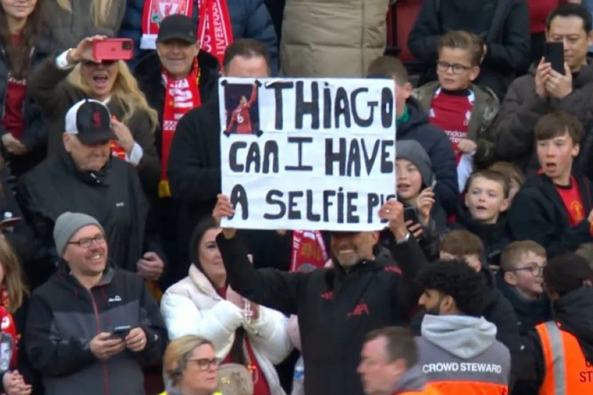 Κατά τη διάρκεια του αγώνα, που έληξε 2-2, ο Γερμανός χάρισε ένα τρομερό στιγμιότυπο, αφού ανέβηκε στην εξέδρα του Άνφιλντ και σήκωσε ένα χαρτόνι που έγραφε: “Τιάγκο, μπορώ να έχω μια selfie παρακαλώ;”, ζητώντας μια φωτογραφία με τον Τιάγκο Αλκάνταρα.