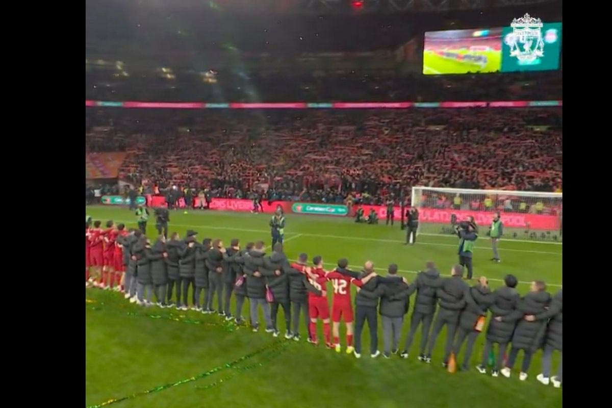 Λίβερπουλ: Όμορφες στιγμές στο Γουέμπλεϊ, σύσσωμη η ομάδα και οι φίλαθλοι των “κόκκινων” τραγούδησαν μαζί το “You’ll Never Walk Alone”
