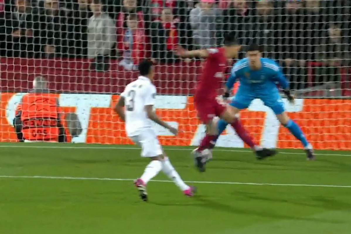Η Λίβερπουλ μπήκε φουριόζα στην αναμέτρηση κόντρα στη Ρεάλ και άνοιξε το σκορ μόλις στο 4ο λεπτό. Ο Σαλάχ έκανε φοβερή σέντρα με το εξωτερικό του αριστερού ποδιού του και ο Νούνιες πετάχτηκε στην καρδιά της άμυνας των μερένγκες, για να νικήσει τον Κουρτουά με απίστευτο τακουνάκι.