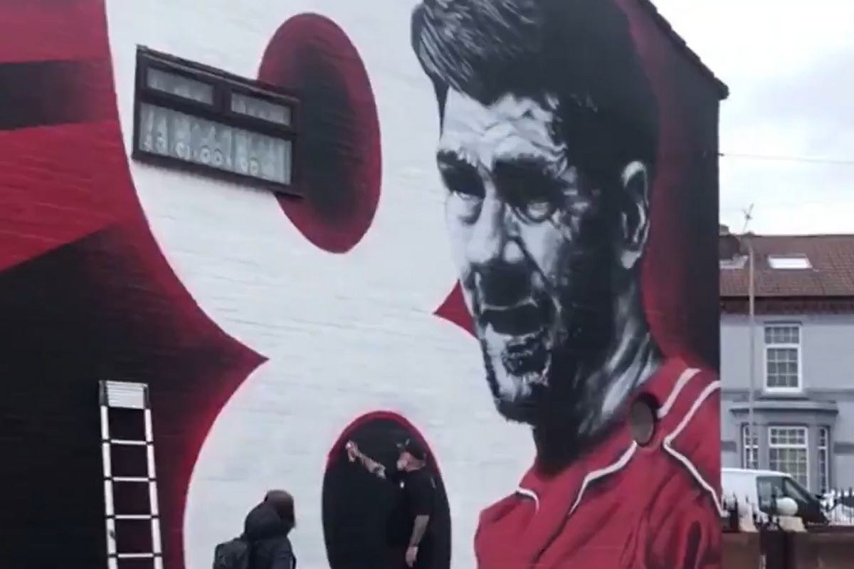 Όπως είναι φυσικό, ο θρύλος της Λίβερπουλ ήταν αδύνατον να μην κοσμεί με κάποιον τρόπο την περιοχή. Έτσι, ο καλλιτέχνης του “δρόμου” MurWalls έφτιαξε κοντά στο Άνφιλντ την εντυπωσιακή προσωπογραφία του 36χρονου με τον αριθμό 8 κοντά του, προσθέτοντας ακόμα ένα “στολίδι” στους τοίχους της πόλης.