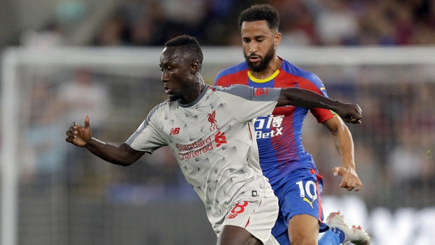 Liverpool's Naby Keita, front, and Crystal Palace's Andros Townsend run for the ball during the English Premier League soccer match between Crystal Palace and Liverpool at Selhurst Park stadium in London, Monday, Aug. 20, 2018. (AP Photo/Kirsty Wigglesworth)