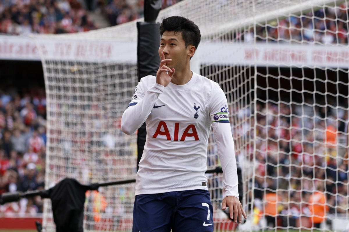 Ο Σον πανηγυρίζει το γκολ που πέτυχε κόντρα στην Άρσεναλ © 2023 David Cliff / AP IMAGES
