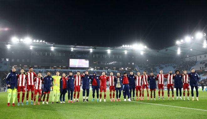Οι παίκτες του Ολυμπιακού πανηγύρισαν με τον κόσμο τους τη νίκη επί της Μάλμε για την 3η αγωνιστική της League Phase του Europa League.