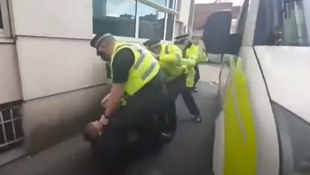 Σε αυτό πρωταγωνιστούν αστυνομικοί που αφού κατάφεραν να “τσακώσουν” οπαδό, στη συνέχεια τον έριξαν στο έδαφος και τον έσυραν σε ένα στενό, για να τον γρονθοκοπήσουν στη συνέχεια ώστε να τον ακινητοποιήσουν πριν προχωρήσουν στη σύλληψή του.
