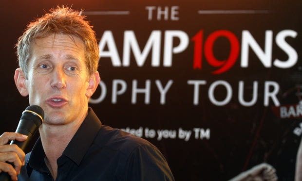 Retired Manchester United goalkeeper Edwin van der Sar speaks during a press conference of the Barclays Premier League trophy tour around Asia, in Kuala Lumpur, Malaysia, Tuesday, July 5, 2011. (AP Photo/Lai Seng Sin)