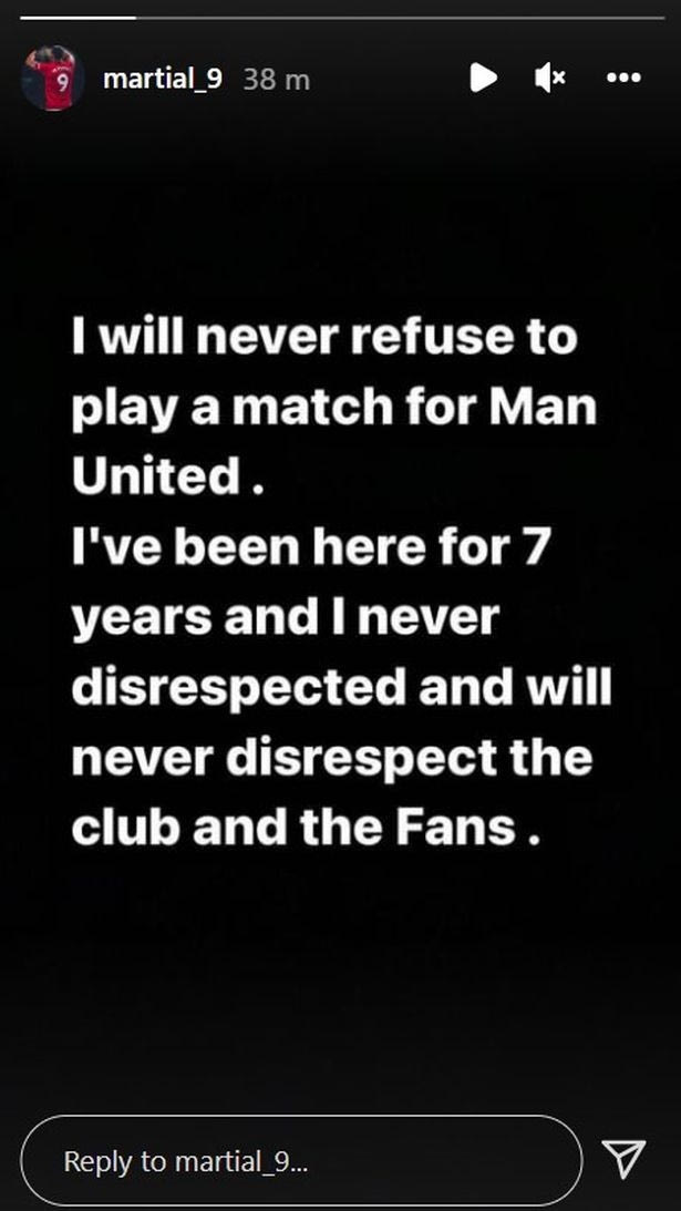 Όλο αυτό βέβαια μέχρι να λάβει την απάντηση του Γάλλου. “Δεν θα αρνιόμουν ποτέ να αγωνιστώ για τη Μάντσεστερ Γιουνάιτεντ. Βρίσκομαι εδώ 7 χρόνια και ποτέ δεν υπήρξα και θα είμαι ποτέ ασεβής απέναντι στον σύλλογο και στους φιλάθλους“, έγραψε σε ανάρτησή του.
