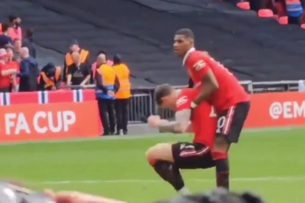 Ο Μάρκους Ράσφορντ ανέλαβε να δώσει δύναμη στους συμπαίκτες του μετά τον χαμένο τελικό του Κυπέλλου Αγγλίας με τη Σίτι, γι' αυτό και τους σήκωνε από το έδαφος, όπου απογοητευμένοι κάθονταν μετά το ματς.