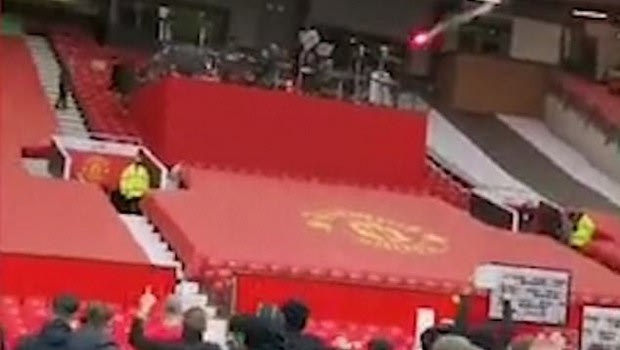 Οι φανς της Μάντσεστερ Γιουνάιτεντ είχαν άγριες διαθέσεις κατά την εισβολή τους στο "Ολντ Τράφορντ", με απτή απόδειξη να είναι μία φωτοβολίδα που έφυγε από χέρι οπαδού και είχε ως στόχο τον τηλεσχολιαστή του Sky Sports, Τζέιμι Κάραγκερ (VIDEO).