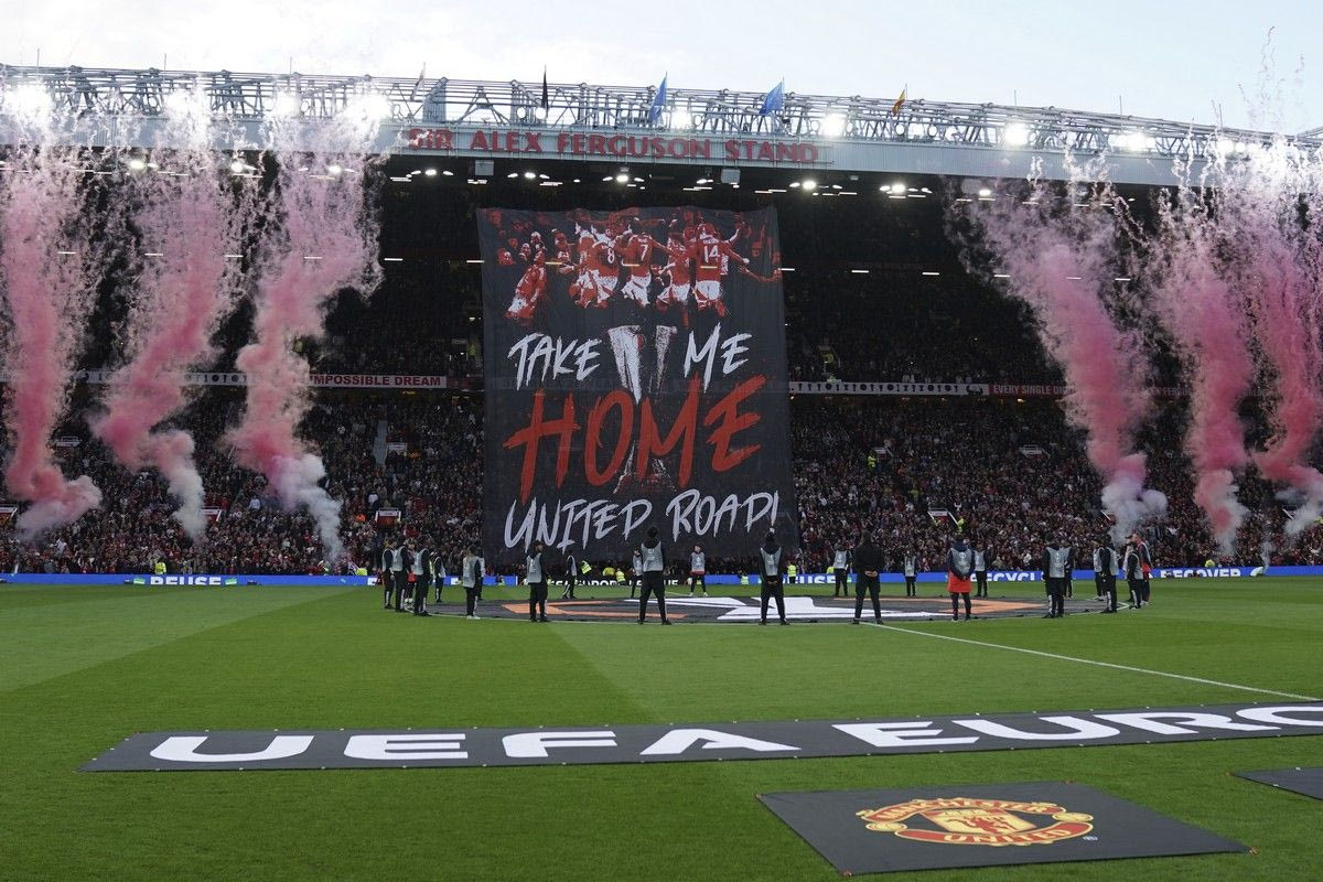 Συγκεκριμένα είχαν γιγαντιαίο tifo που έγραφε το “Take me home, United Road”, το οποίο είναι από το τραγούδι που παίζεται… τελευταίο στο Ολντ Τράφορντ και είναι από τα αγαπημένα των φίλων των κόκκινων διαβόλων.