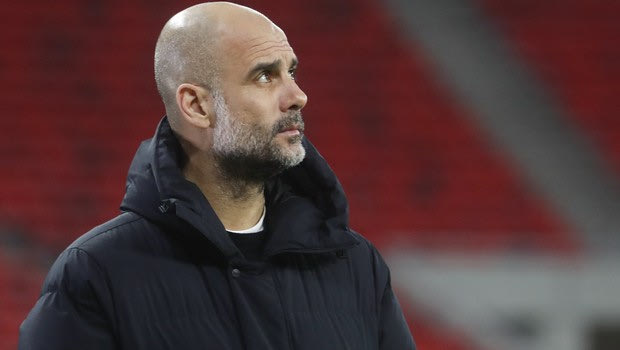 Ο Πεπ Γκουαρδιόλα κατά τη διάρκεια του αγώνα της Μάντσεστερ Σίτι με την Γκλάντμπαχ για το Champions League @ 2021 Laszlo Baloghr/Associated Press