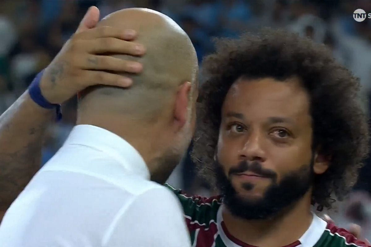 Ο τηλεοπτικός φακός απαθανάτισε μετά το τέλος του Μάντσεστερ Σίτι - Φλουμινένσε στον τελικό του Παγκοσμίου Κυπέλλου Συλλόγου την αγκαλιά του Μαρσέλο με τον Πεπ Γκουαρδιόλα.