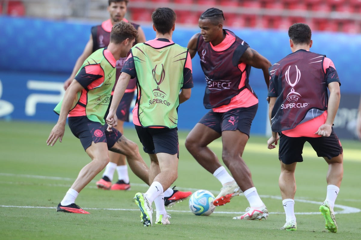 Η Μάντσεστερ Σίτι ολοκλήρωσε την προετοιμασία της για το παιχνίδι κόντρα στη Σεβίλλη στον τελικό του Super Cup με μια προπόνηση στο "Γ. Καραϊσκάκης".