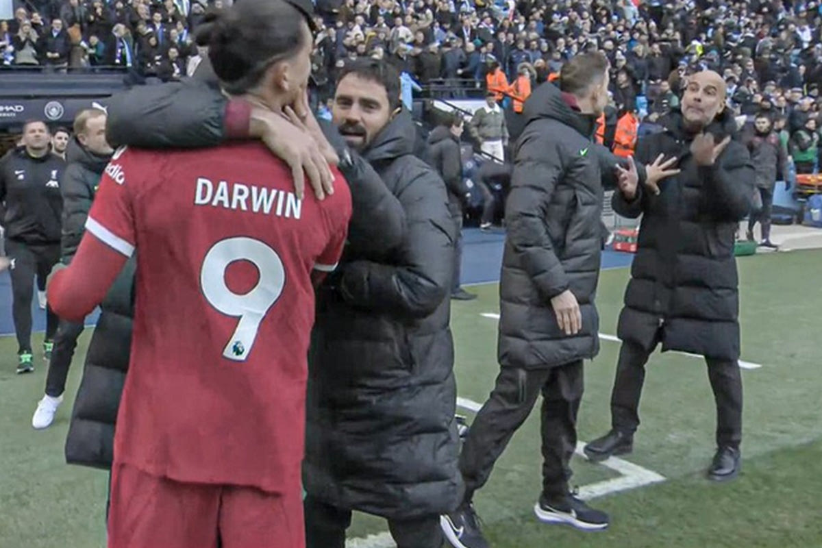 Το φινάλε του ντέρμπι στο "Έτιχαντ" μεταξύ της Μάντσεστερ Σίτι και της Λίβερπουλ έφερε ένταση στη γραμμή του πλαγίου άουτ, με τον Ντάργουιν Νούνιες να πλησιάζει τον Πεπ Γκουαρδιόλα και τους δύο άνδρες να ανταλλάσουν βαριές κουβέντες.