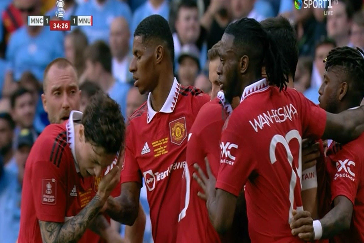 Ο Βίκτορ Λίντελοφ δέχθηκε ένα αντικείμενο στο πρόσωπό από την εξέδρα κατά τη διάρκεια των πανηγυρισμών της Μάντσεστερ Γιουνάιτεντ μετά το 1-1 στον τελικό του Κυπέλλου Αγγλίας.