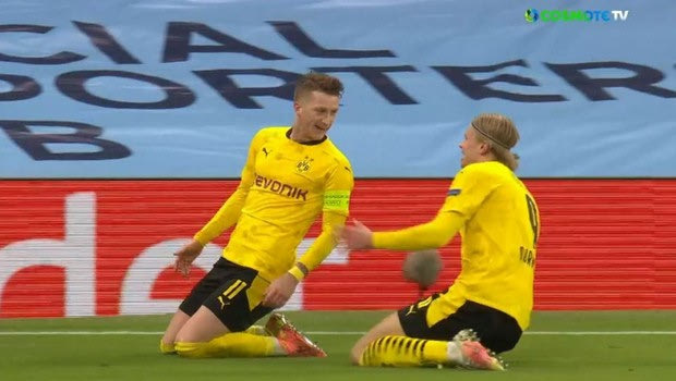 Έξι λεπτά πριν το φινάλε της αναμέτρησης η Ντόρτμουντ βρήκε το γκολ της ισοφάρισης κόντρα στη Μάντσεστερ Σίτι με τέρμα που πέτυχε ο Ρόις. Ο Γερμανός επιθετικός συνδυάστηκε υπέροχα με τον Χάαλαντ ο οποίος του έκανε μια τρομερή πάσα και αυτός μπήκε στην περιοχή και πλάσαρε εύστοχα στο 84′ για το 1-1.